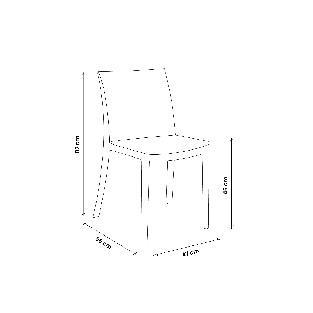 Monoblok stolica od polipropilena (plastike) i fiberglasa sa protukliznim čepovima. Mat završna obrada. 100% reciklirajuća smola. Svestrana, pogodna za unutrašnju i vanjsku upotrebu.