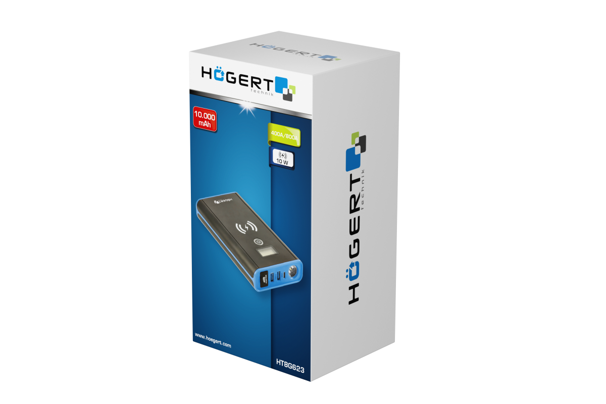 Prenosni litijumski starter Hoegert HT8G623 400A sa bežičnim punjenjem