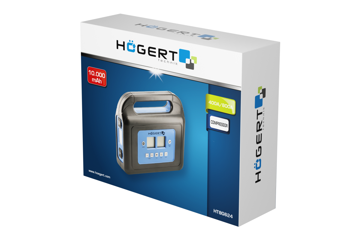 Prenosni litijumski starter Hoegert HT8G624 400A sa kompresorom