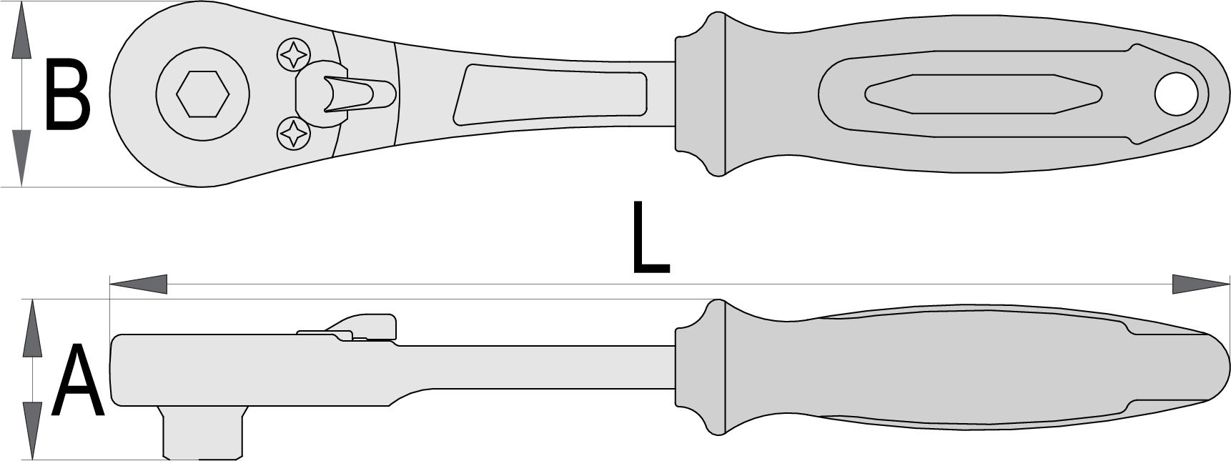 5° radni ugao Brava sa utičnicom sa mehanizmom za otpuštanje brave desni/lijevi prekidač Dugme za usmeravanje (rotirajući točkić) omogućava precizno okretanje dvokomponentna, ergonomska, neklizajuća ručka koja jamči čvrst i siguran hvat precizan mehanizam sa račnom od visokokvalitetnog hrom-molibden legiranog čelika račni mehanizam sa 72 zuba tijelo izrađeno od hrom-vanadij legiranog čelika |