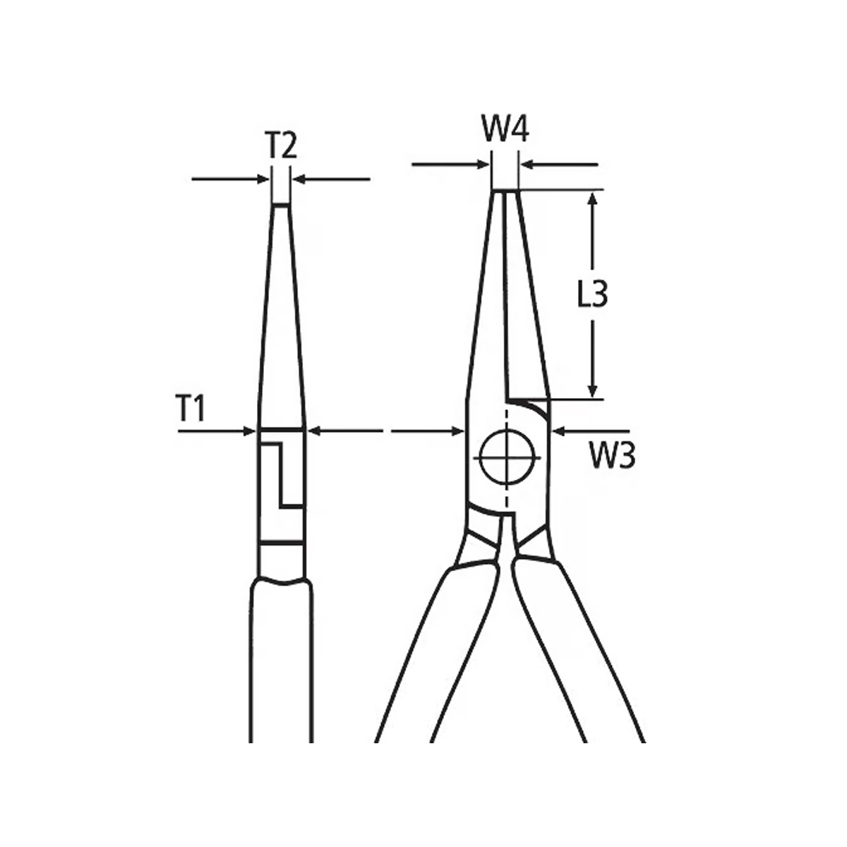 Debljina čeljusti (zglob) (T1): 9,5 mm Debljina vrhova (T2): 2,5 mm Dužina vilice (L3): 73,0 mm Kapacitet rezanja tvrde žice (prečnik): Ø 2,2 mm Kapaciteti rezanja srednje tvrde žice (prečnik): Ø 3,2 mm Standard: DIN ISO 5745 DIN EN 60900 IEC 60900; Širina glave (W3): 18 mm Širina vrhova (W4): 3,0 mm |