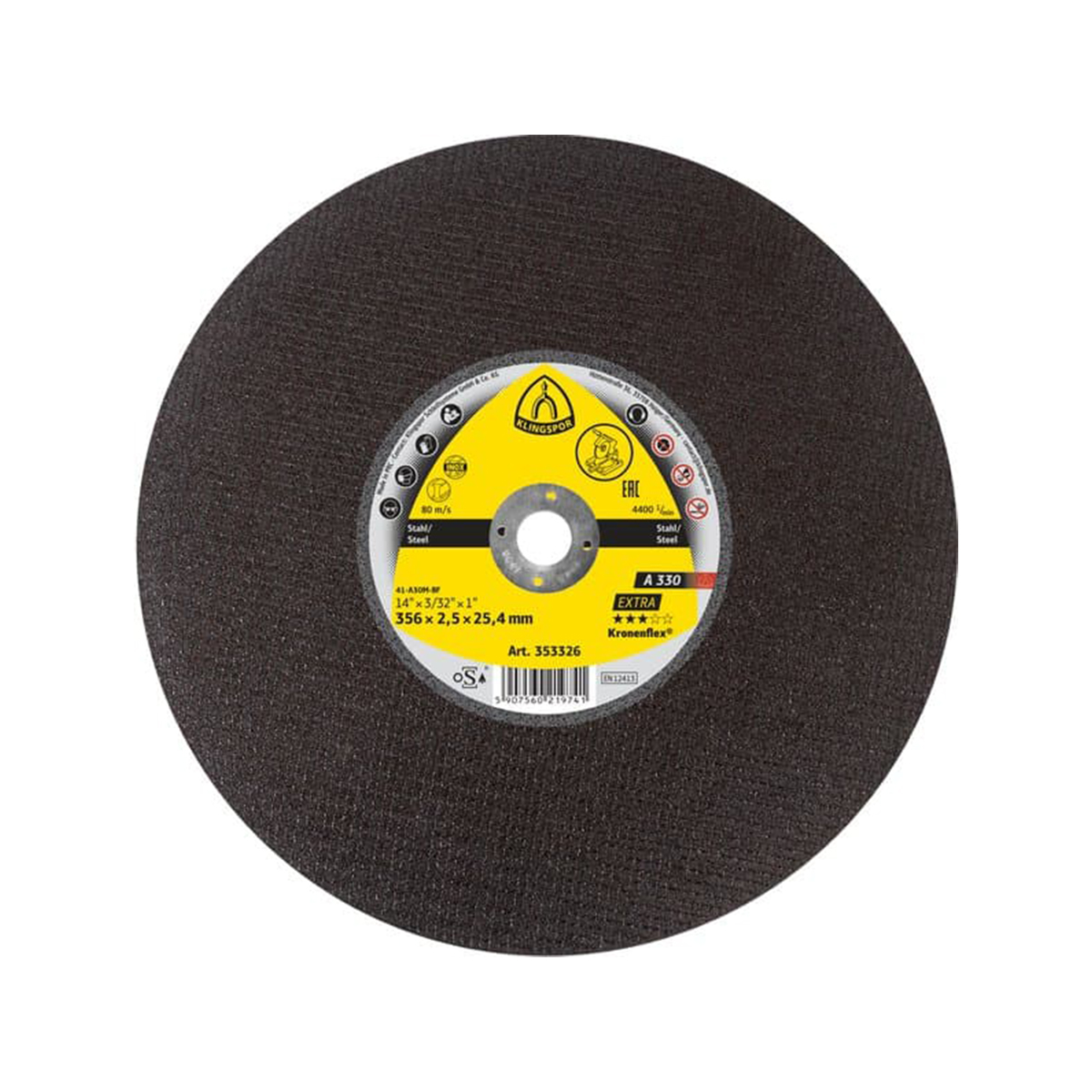 Klingspor bira samo najbolje sirovine za svaki veliki Kronenflex rezni disk, a A 330 Extra nije izuzetak. Vezivo i zrna savršeno su usklađeni i ravnomjerno se troše u stvarnim uslovima upotrebe. Sintetički proizvedeno abrazivno zrno, naročito oštro i dugotrajno, značajno doprinosi izuzetnim performansama ovih vrhunskih proizvoda. Staklena vlakna se koriste kao ojačanje kako bi disk mogao izdržati povećane bočne sile. Klingspor rezni diskovi takođe impresioniraju sigurnosnim karakteristikama: testirani su prema oSa smjernicama i usklađeni sa evropskim sigurnosnim standardom EN 12413.