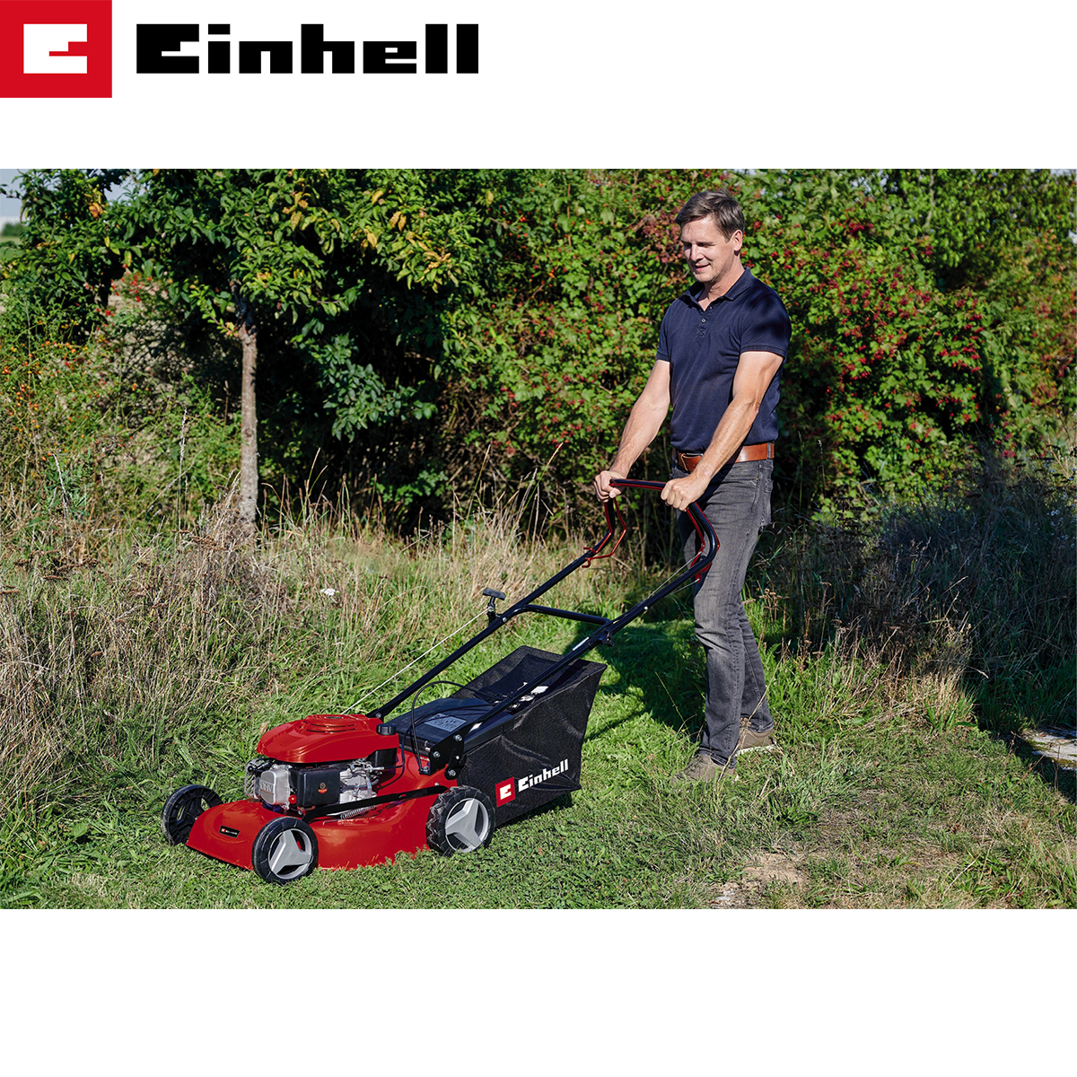 Einhell benzinska samohodna kosilica GC-PM 46/4 S robusna je, učinkovita i pouzdana pomoć u košnji velikih travnjaka. Njezin jednocilindrični četverotaktni motor generira veliki okretni moment, dok odvojen pogon na stražnjim kotačima osigurava kontinuirani napredak. Visina košenja se podešava centralno na devet razina za jednostavno i vrlo točno prilagođavanje potrebnoj visini košenja. Uže za pokretanje GC-PM 46/4 S lako je dohvatiti na dugoj ručki za pokretanje bez napora. Sklopiva dugačka ručka podesiva je po visini za dobru prilagodbu veličini korisnika, a ujedno omogućuje skladištenje kosilice na minimalnom prostoru. Njezino dugotrajno kućište izrađeno je od plastificiranog čelika. Otporna vreća za travu nudi prostor za duge radne sesije. Zahvaljujući indikatoru razine možete na prvi pogled vidjeti kada je vrijeme za pražnjenje košare. GC-PM 46/4 S preporučuje se za travnjake do 1400 m².