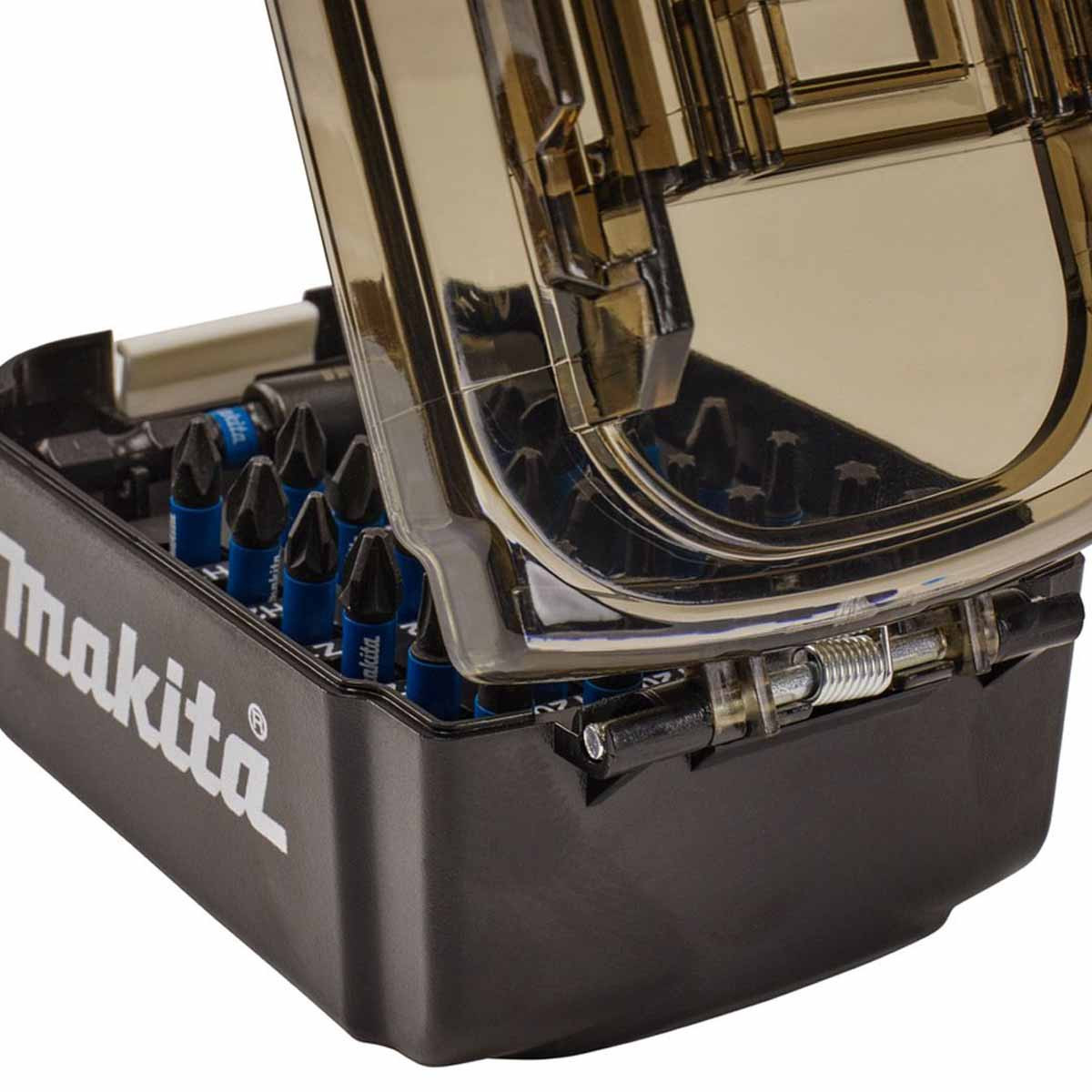30 udarnih crnih bitova dužine 25 mm izrađenih od visokolegiranog specijalnog čelika S2 za dugi vijek trajanja. Precizno izrađeni bitovi osiguravaju savršeno zavrtanje. Impact Black Bits razvijeni su za upotrebu u udarnim odvijačima. Uključen u set je i magnetni držač bita dužine 60 mm. U kutiji u obliku Makita LXT baterije.