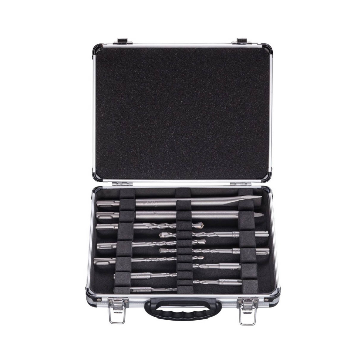 Ovaj SDS+ Plus set svrdla i dlijeta pogodan je za bušenje, rušenje i korekciju u betonu ili zidu, sa vrhom za centriranje za precizan početak bušenja. Uključuje x11 burgije i dlijeta, koji se isporučuju u kvalitetnom aluminijumskom koferu za nošenje.