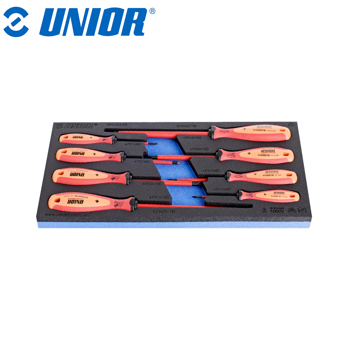 Set križnih izvijača-šarafcigera 8-dijelnih s VDE TBI ručkom (PH i PZ) u SOS ulošku UNIOR 964 621802