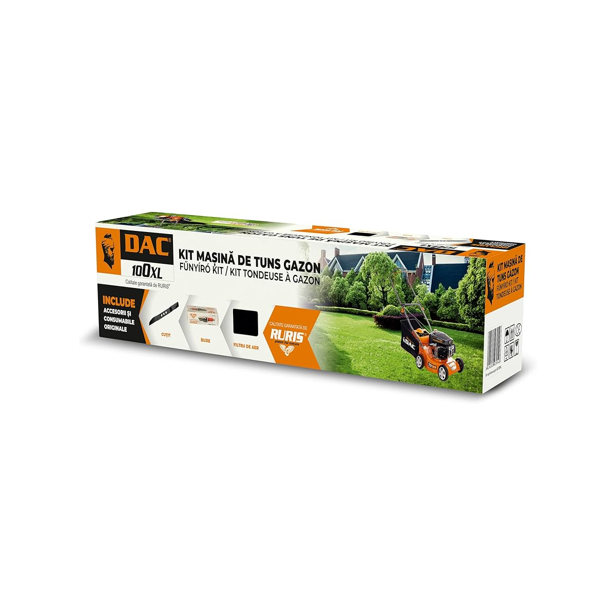 Komplet za kosilicu DAC 100XL sadrži komponente potrebne za održavanje opreme, koje se često mijenjaju. Uz pomoć ovog kompleta, kupac ima sigurnost da će dugo uživati u performansama kosilice DAC 100XL.