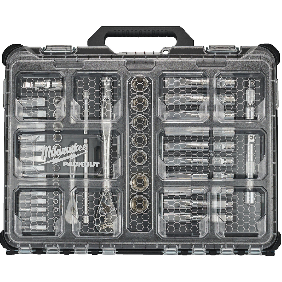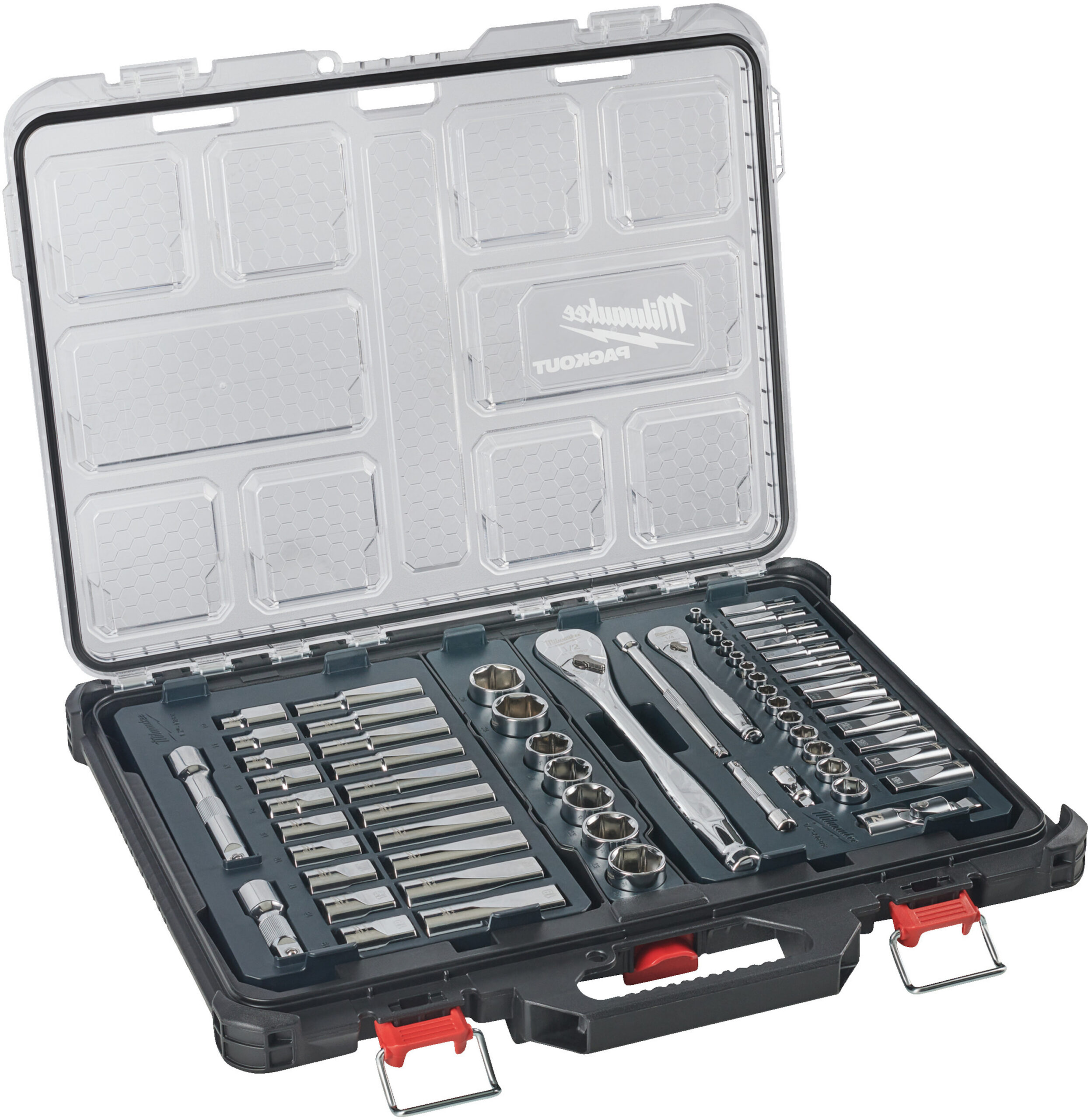 Set račni-gedora i nasadnih ključeva Milwaukee 1/4″ i 1/2″ 63 komada Packout 4932493661