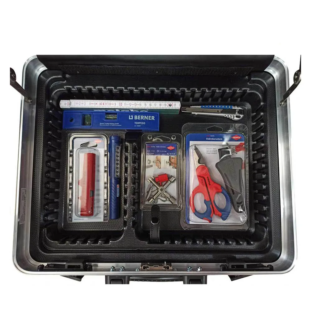 * Bahco čekić bravarski 300g – 481-300 x 1 kom * Berner lampa aku Sa 7+1 LED-SMD i magnetom “Pen Light” (Bez punjača) – 200559 x 1 kom * Berner libela za električare 200mm magnetna Torpedo – 38847 x 1 kom * Irimo skalpel 9-135mm – 667-135-1 x 1 kom * Knipex kliješta – ključ 180mm – 86 03 180 x 1 kom * Knipex kliješta bočna sječa 160mm 1000V – 70 06 160 x 1 kom * Knipex kliješta kombinovana 180mm 1000V – 03 06 180 x 1 kom * Knipex kliješta papige / papagajke “Cobra” 250mm – 87 01 250 x 1 kom * Knipex kliješta poluokrugla (Špic) kriva 200mm 1000V – 26 26 200 x 1 kom * Knipex kliješta poluokrugla (Špic) ravna 200mm 1000V – 26 16 200 x 1 kom * Knipex kliješta za skidanje izolacije 0,03-10,0mm2 – 12 40 200 x 1 kom * Knipex kliješta za skidanje izolacije 160mm 1000V – 11 06 160 x 1 kom * Knipex ključ kombinovani za ormare – 00 11 03 x 1 kom * Knipex kofer za alat “Basic” sa pregradama 465x200x410mm – 00 21 05 LE x 1 kom * Knipex nož za kabele 50 / 190mm 1000V – 98 54 x 1 kom * Knipex odvijač križni PH1x80/187 1000V – 98 24 01 x 1 kom * Knipex odvijač križni PH2x100/212 1000V – 98 24 02 x 1 kom * Knipex odvijač plosnati 3,0×100/202 1000V – 98 20 30 x 1 kom * Knipex odvijač plosnati 4,0×100/202 1000V – 98 20 40 x 1 kom * Knipex odvijač plosnati 5,5×125/232 1000V – 98 20 55 x 1 kom * Knipex odvijač plosnati 6,5×150/262 1000V – 98 20 65 x 1 kom * Knipex skidač izolacije univerzalni (8-13mm) 125mm – 16 80 125 SB x 1 kom * Knipex škare/makaze 160mm Za kabal 6mm i Fe žicu 4mm – 95 62 160 x 1 kom * Knipex škare/makaze 200mm Za kabal VDE 70mm2 – 95 16 200 x 1 kom * Knipex škare/makaze elektroničarske 155mm – 95 05 155 SB x 1 kom * Metabo drveni metar – 638612 x 1 kom * Metabo zidarska olovka – 638524 x 1 kom * Proxxon ispitivač napona VDE 220-250V 180mm – 22392 x 1 kom |