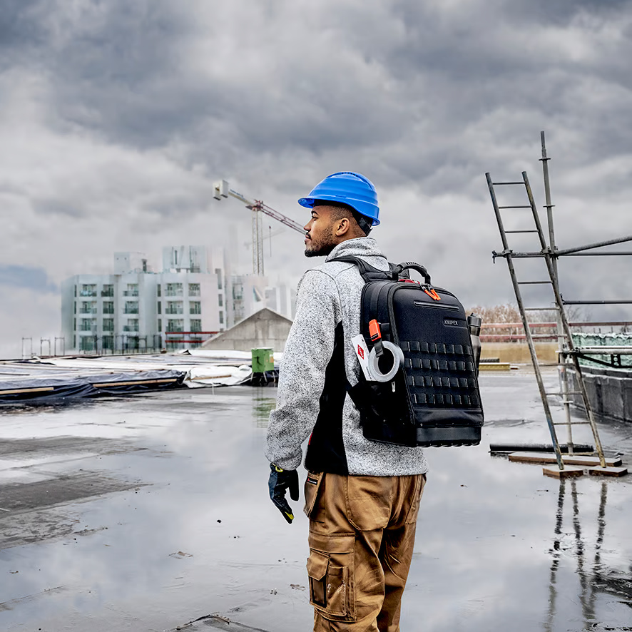 - Prilagođava se tebi i tvojim alatima: praktičan i udoban zahvaljujući potpuno zglobnim prednjim i stražnjim panelima, uklonjivoj dasci za alat i podstavi za leđa;