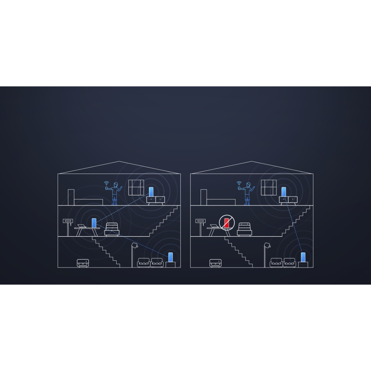 Xiaomi Mesh System AX3000 (2-Pack) kombinuje se u mrežastu mrežu koja pruža Wi-Fi 6 pokrivenost u cijelom domu, pokrivajući do 4000 kvadratnih stopa (približno 370 m²) prostora. Xiaomi Mesh System AX3000 podržava mrežasto umrežavanje sa istim modelom i/ili Mi Router AX9000 za ukupno do 10 uređaja. Signal automatski i besprijekorno luta između različitih rutera, omogućavajući Vam da igrate dok se krećete.