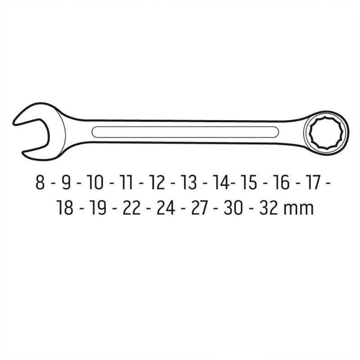 Veličine ključeva u setu su: 8, 9, 10, 11, 12, 13, 14, 15, 16, 17, 18 i 19 mm; |