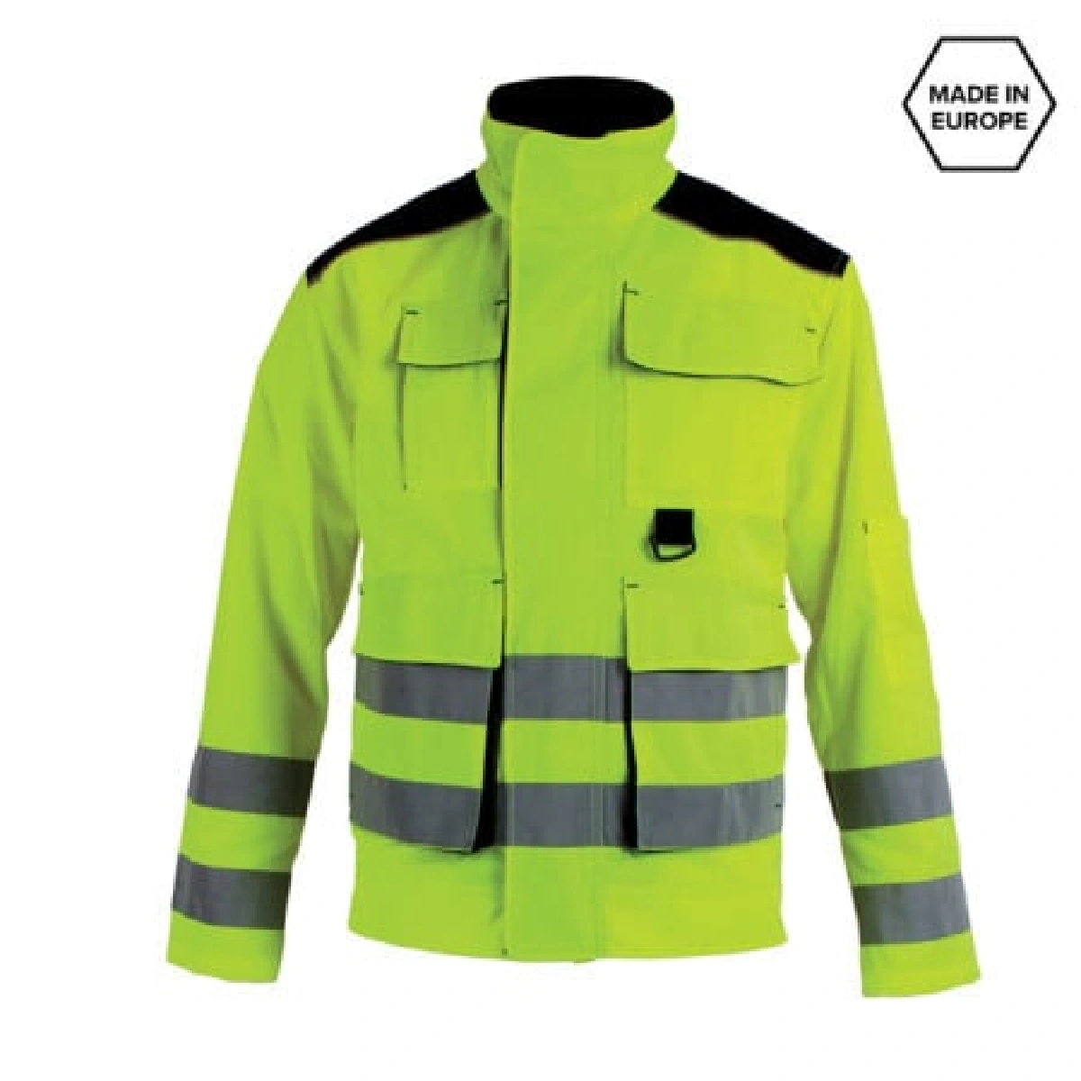 Radna jakna izrađena je od Tencate Tecawork™ tkanine koja je pogodna za industrijsko pranje na 75 °C. Kopča se skrivenim patent zatvaračem i čičak trakom, ima klasični ovratnik i 5 funkcionalnih džepova. Rukavi se zatežu čičak trakom. Kroj je klasičan i dobro pristaje svima.