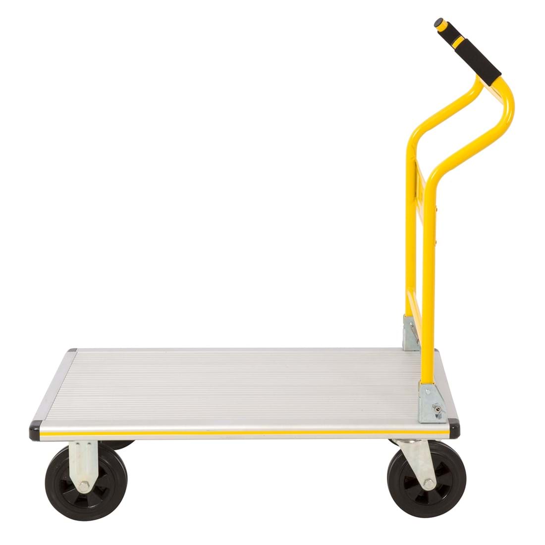 - Izrađena od kombinacije laganih aluminijumskih platformi i ojačanih čeličnih ručki i točkova, ova kolica su idealna za upotrebu u velikim komercijalnim skladištima, pomoćnim prostorima maloprodajnih objekata, kancelarijskim okruženjima ili za bilo koji zadatak koji zahtijeva premeštanje teških tereta.