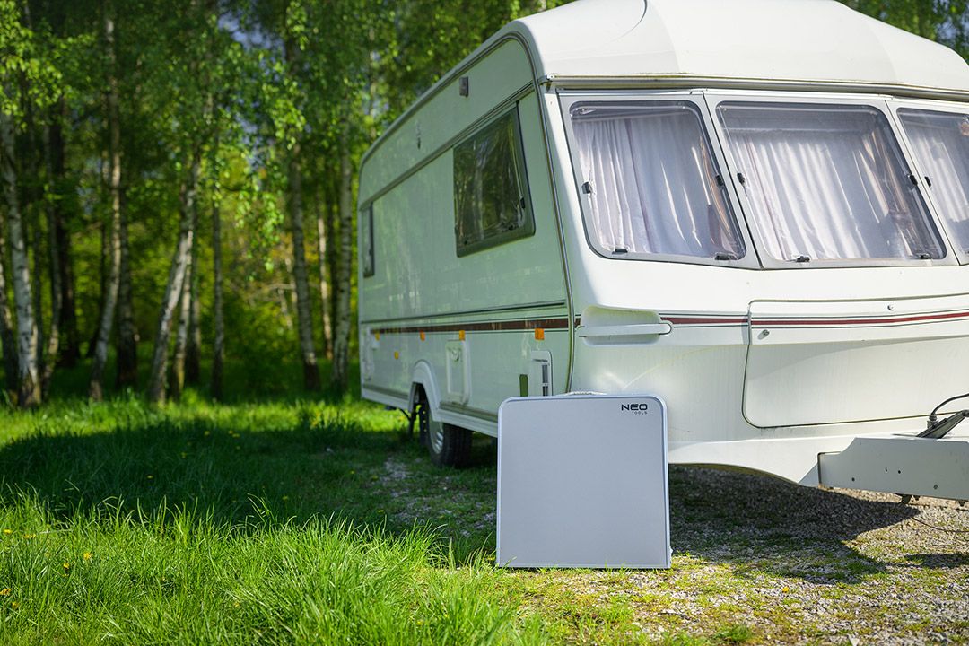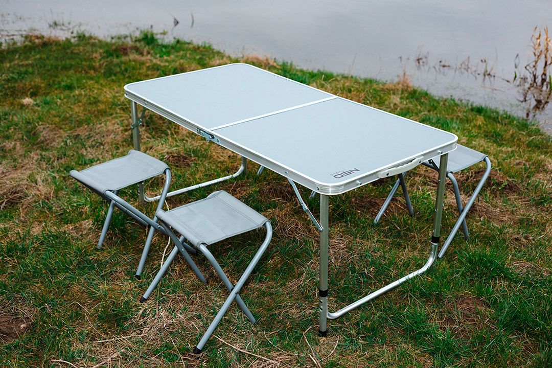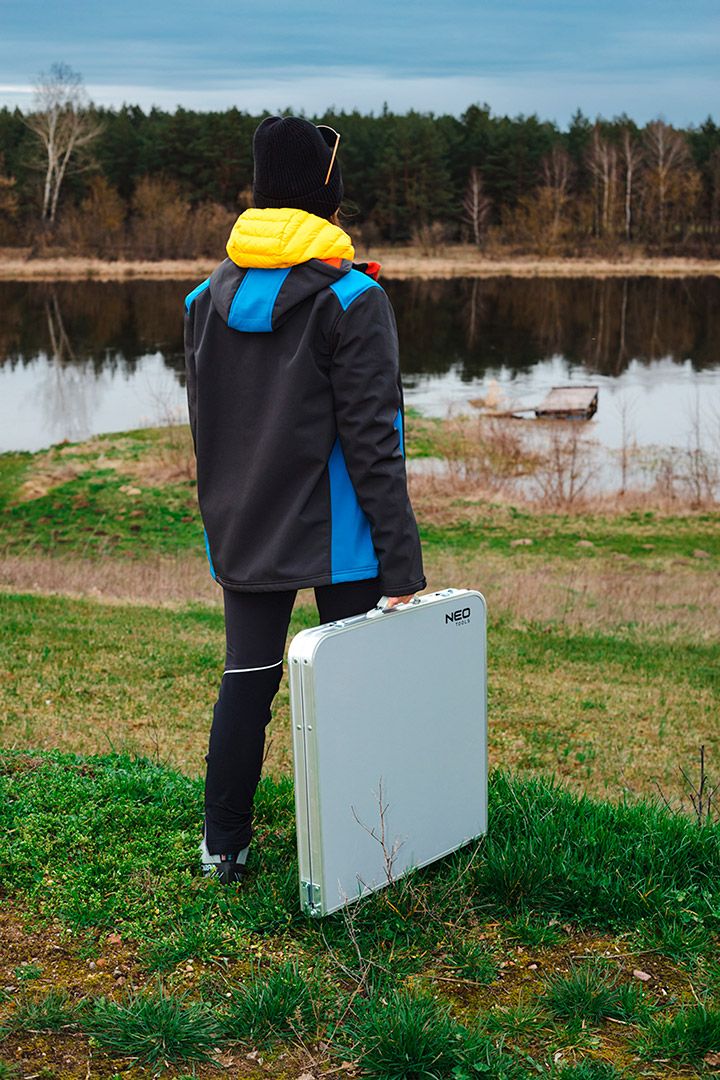 Zahvaljujući svom dizajnu, set se sklapa u kompaktnu kutiju sa ručkom za transport za lakše nošenje. Podesiva visina stola omogućava njegovo odgovarajuće podešavanje u odnosu na sjedište. Kamperski set marke NEO preporučuje se za širok spektar primjena.