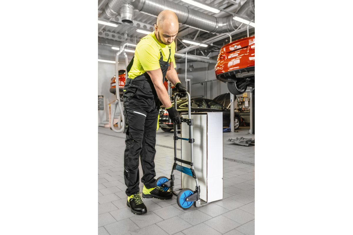 2 kotača promjera 174 mm izrađena su od mekog TPR materijala; Čelični okvir debljine 22,0 x 1,5 mm; Dimenzije nakon sklapanja: 730 x 470 x 230 mm; nosivost: 120 kg; Površina za utovar: 350 x 486 mm; Ručka prekrivena pjenom; Utovarna platforma izrađena od legiranog čelika LD 31; |