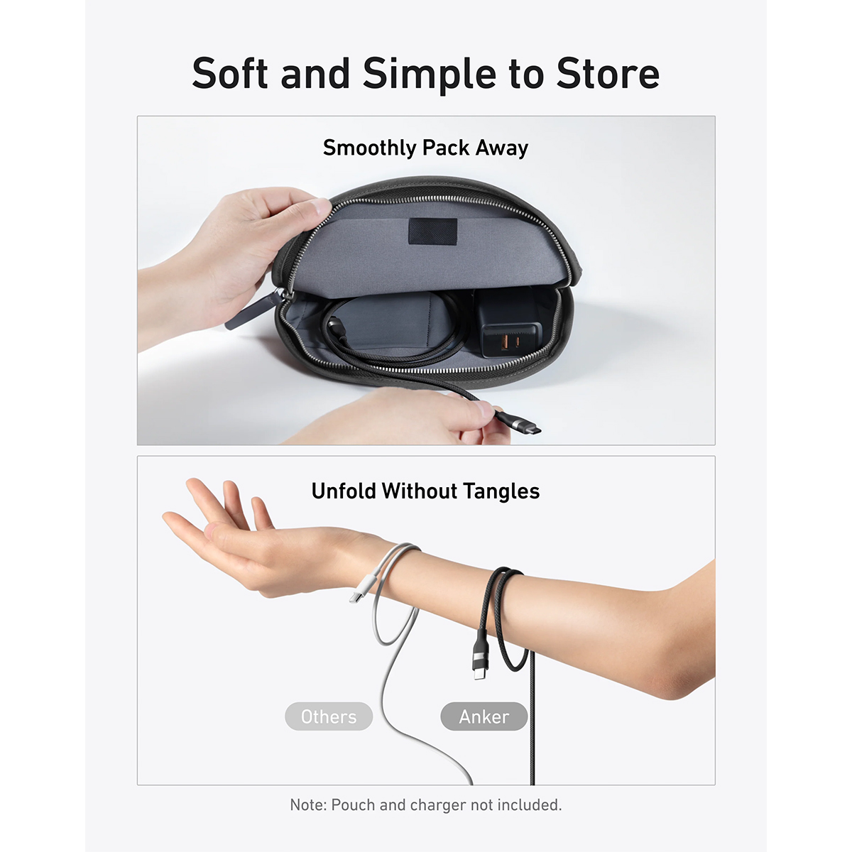 U paketu dolazi silikonski organizator za kablove koji omogućava jednostavno motanje, odlaganje i korištenje bez čvorova i zapetljavanja.