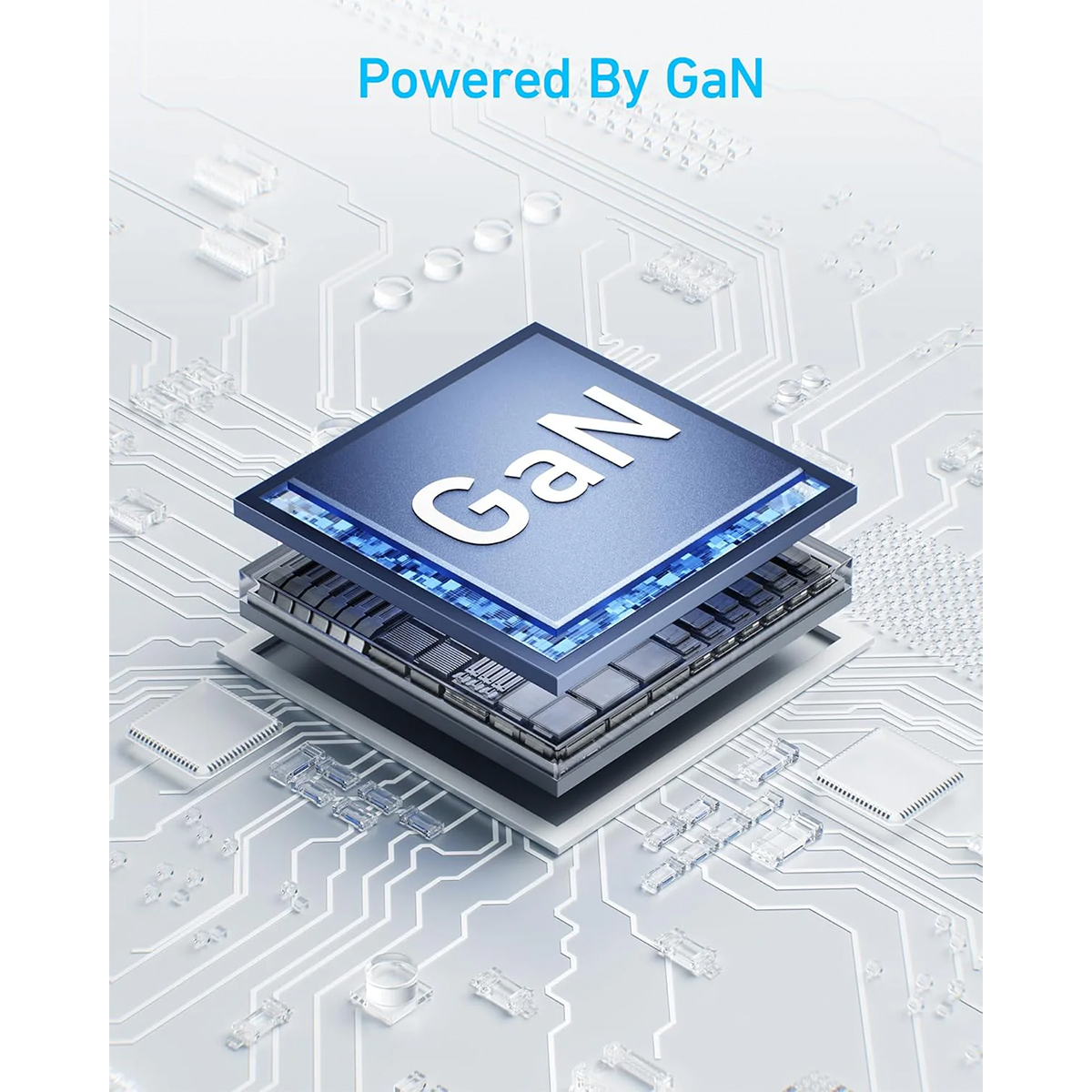 Anker Charger 112W GaN (A2154G11) dizajniran je kao 6-u-1 stolni punjač koji odgovara potrebama modernih korisnika sa više uređaja. Zahvaljujući 3 USB-C i 3 USB-A porta, omogućava istovremeno punjenje laptopa, pametnih telefona, tableta, slušalica i drugih dodataka, bez gubitka stabilnosti ili brzine punjenja. Sa ukupnom snagom od 112W, ovaj punjač je dovoljno snažan da efikasno napaja i zahtjevnije uređaje, uključujući MacBook Air, dok istovremeno puni iPhone i druge mobilne uređaje. Integrisana GaN tehnologija omogućava visoku energetsku efikasnost, manju potrošnju energije i kompaktniji dizajn u poređenju sa klasičnim punjačima. Jedan USB-C port podržava punjenje do 30W, optimizovano za MacBook Air, omogućavajući punjenje do 50% za oko 1 sat i 40 minuta.